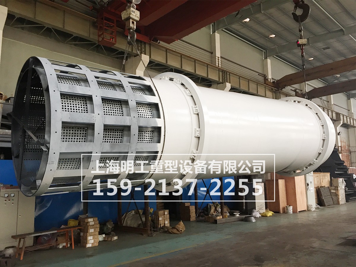 圓筒式洗石機由四個拖輪支撐,筒體随着電機、減速機帶動大小齒輪作低速旋轉。含有泥團和石粉的礦石自進料口經給料裝置給入,進入旋轉滾筒内的礦石被清洗滾筒内安裝具有特定角度的攪拌裝置不斷的帶起、抛起、攪拌,自進料端到出料端移動過程中多次循環過程中被順向或逆向的高壓水柱不斷的洗滌,清洗幹淨的礦石經過卸料端脫污水裝置的脫水後排出送往成品堆。含有污泥的污水則通過出料端的污水裝置流出,經過三級沉澱池的沉澱後以備再次洗礦循環使用。